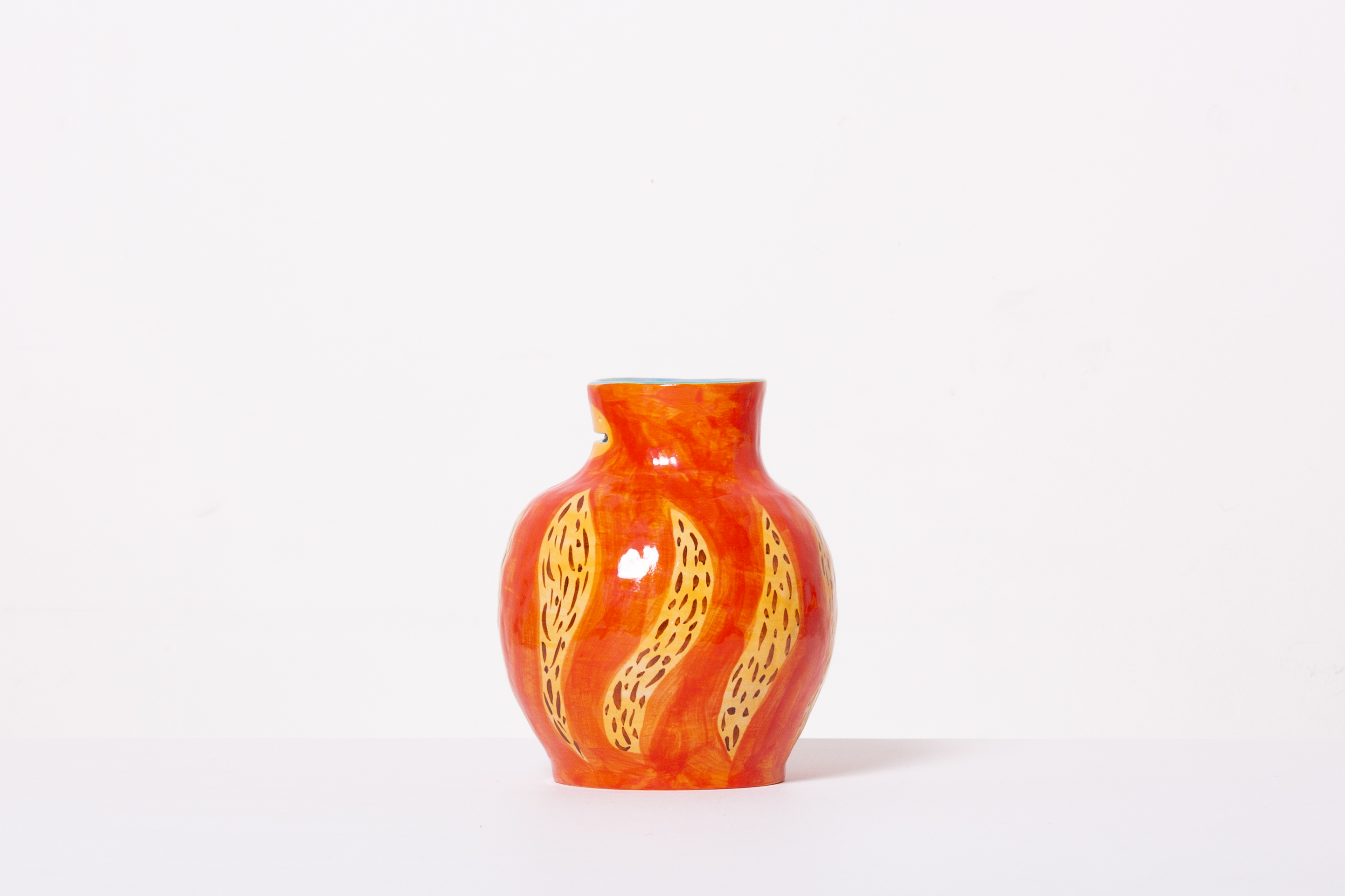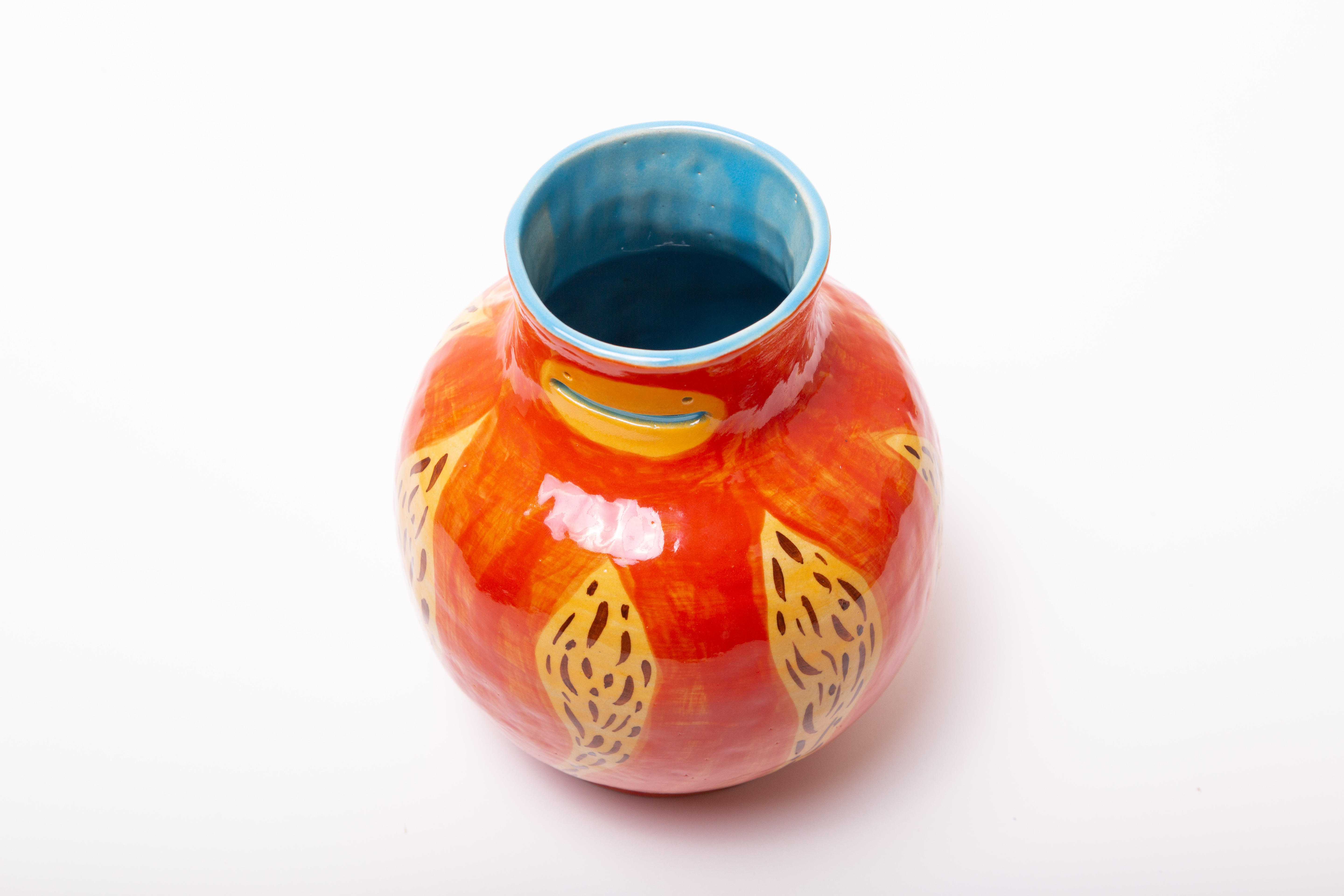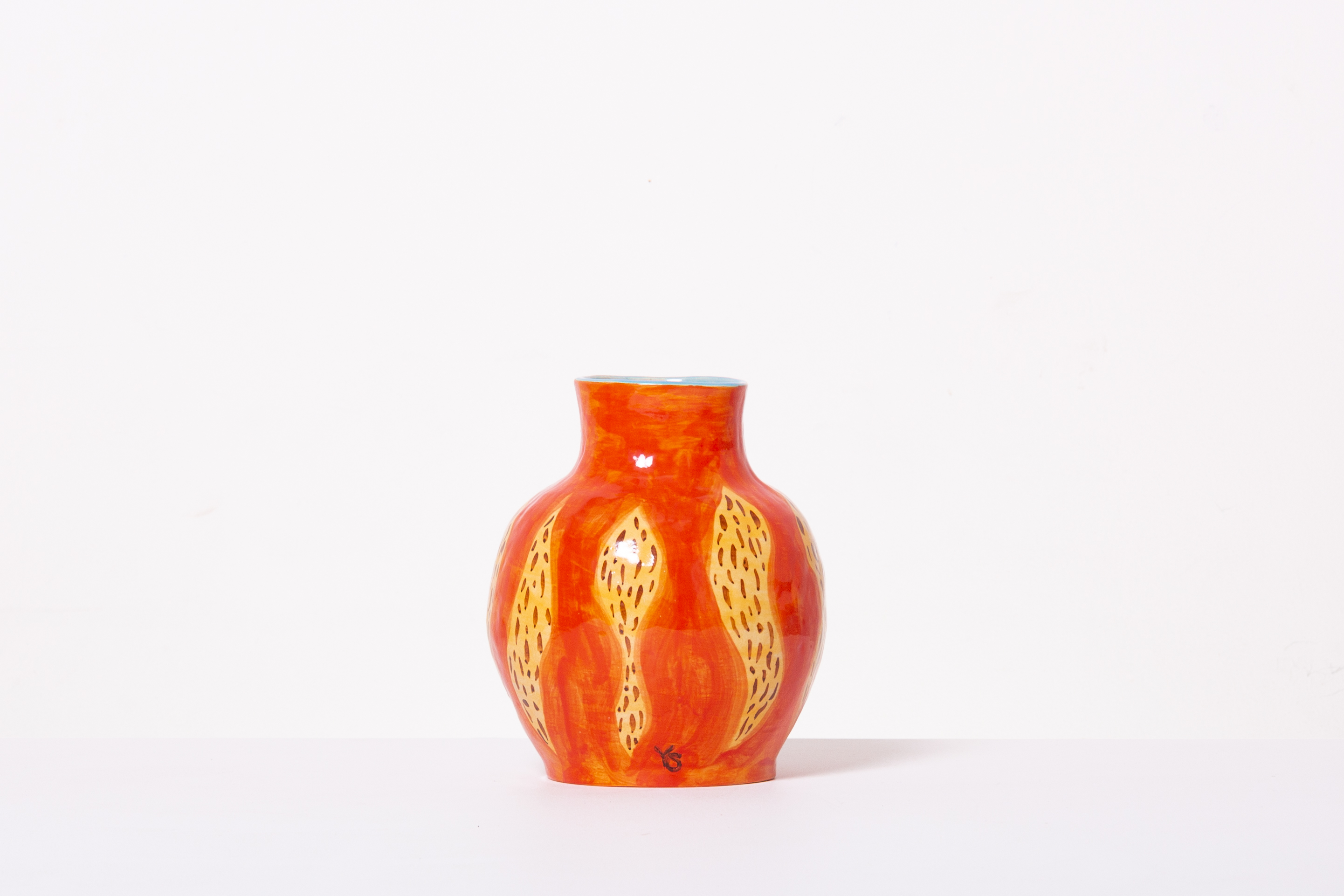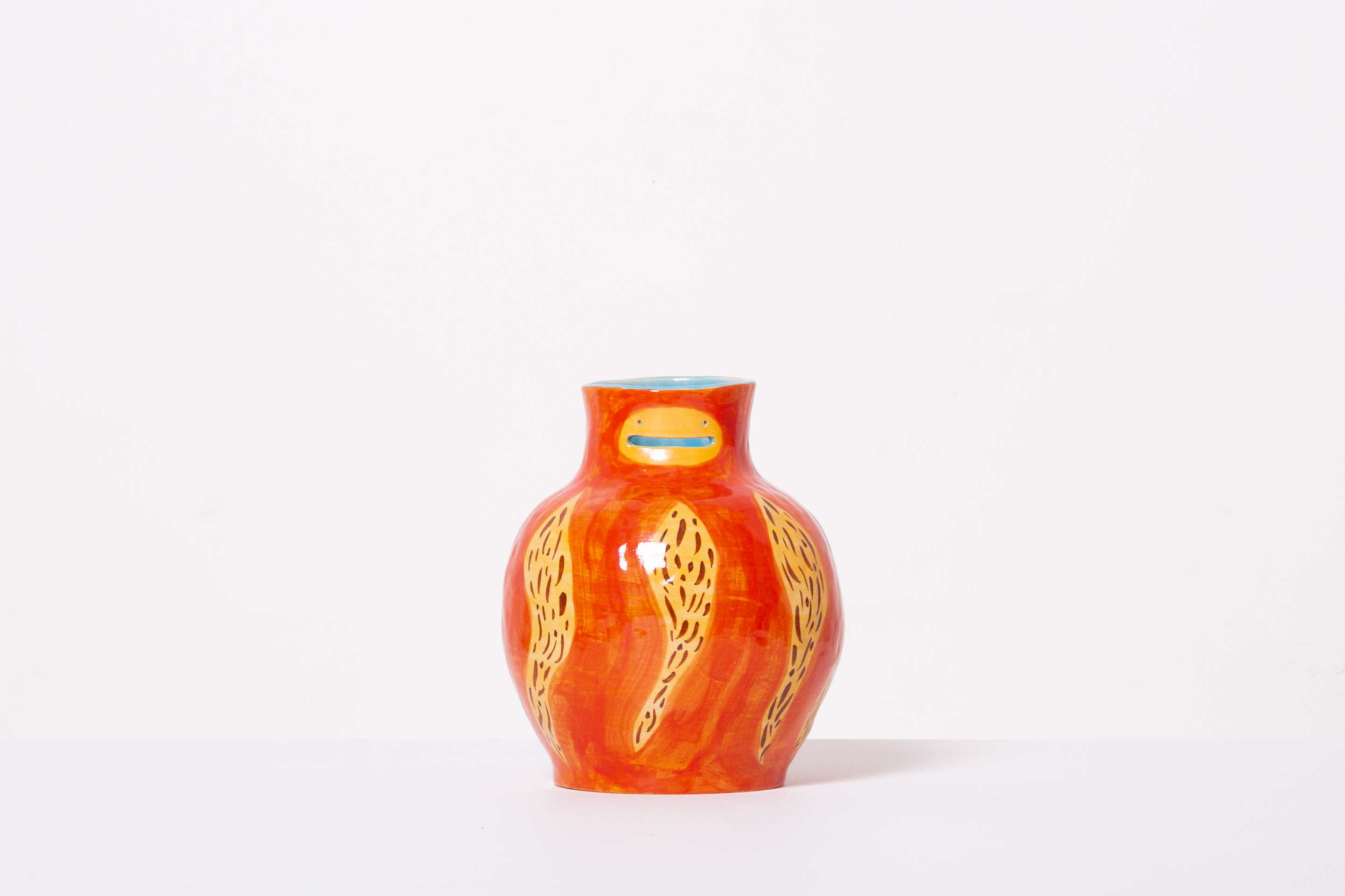 「だるま」と言えば赤くて丸い置物や、子供の頃遊んだ「だるまさんがころんだ」を思い浮かべます。そのモデルとなったダルマさんとは、一体どんな人だったのか。何年も壁に向かって坐禅をしたと伝えられているダルマさん。壁に向かって黙々と坐禅に取り組むダルマさんの姿を思い浮かべながら、今回作品を作りました。本作品は置物として、また、上部が開いているので、花瓶としてもお使いいただけます。